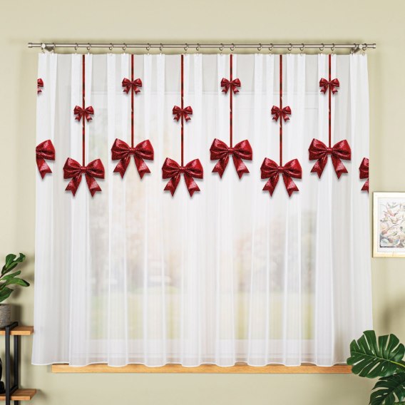 BROKATOWA KOKARDA Firanka z ołowianką WOAL, wysokość 157cm, kolor 001 biały DBN333/WOA/001/000157/1
