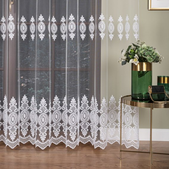 Firanka haftowana pasowa, wysokość 285cm, kolor 001 biały FH0018/020/001/000285/1