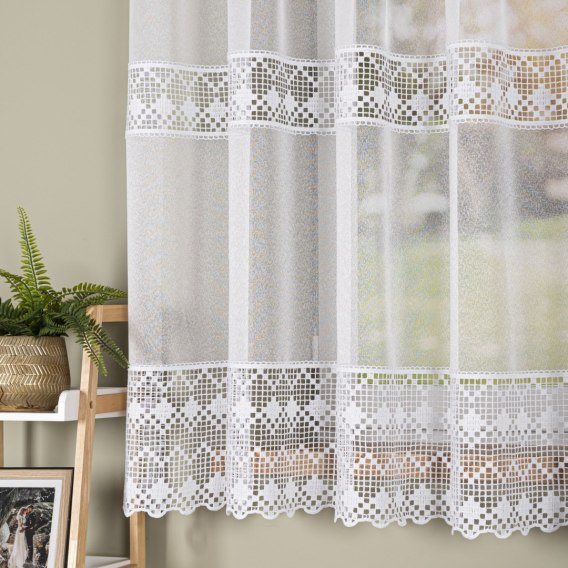 Firanka z aplikacją pasowa, wysokość 175cm, kolor 001 biały 009422/433/001/000175/1