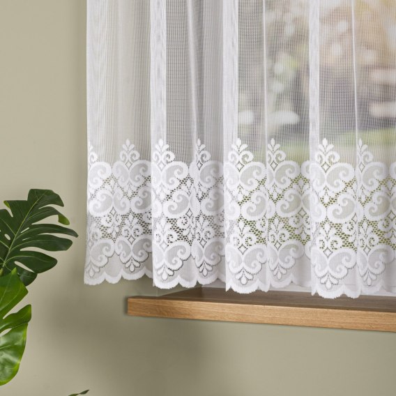 Firanka żakardowa ze wzorem na samym dole, wysokość 155cm, kolor 001 biały 015997/000/001/000155/1