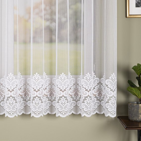 Firanka żakardowa ze wzorem na samym dole, wysokość 175cm, kolor 001 biały 015997/000/001/000175/1