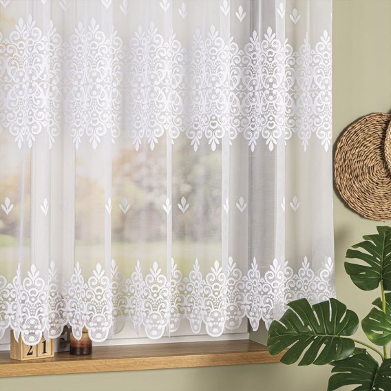 Firanka żakardowa ze wzorem pasowym, wysokość 155cm, kolor 001 biały 107628/000/001/000155/1