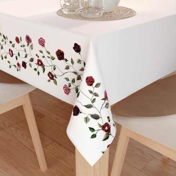 RÓŻYCZKI Z EFEKTEM WYSZYWANIA Tkanina dekoracyjna NINA WODOODPORNA, 160cm, kolor 001 biały D00326/NIW/001/160000/1