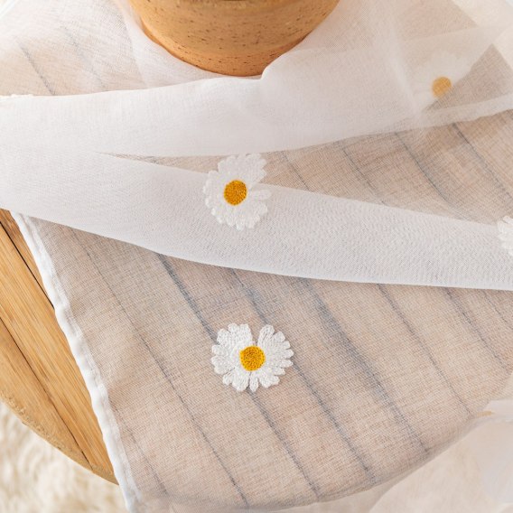 BELLIS Firanka haftowana w stokrotki na etaminie, wysokość 290cm, kolor 001 biały BELLIS/OLO/001/000290/1