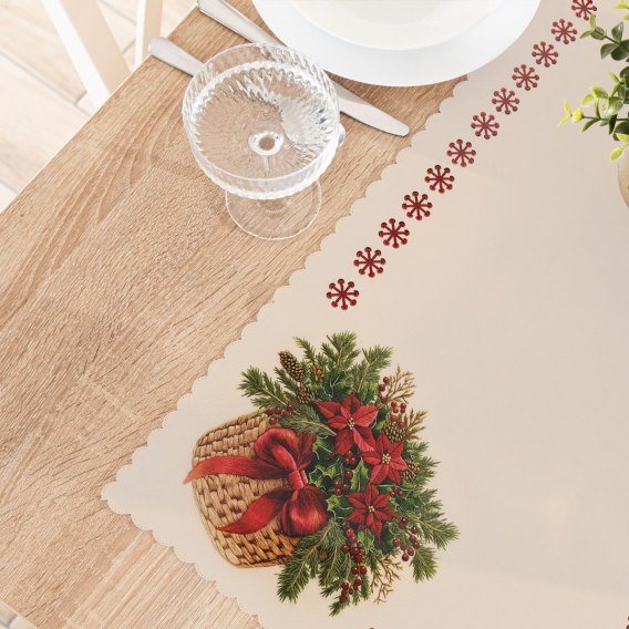 BUKIET W KOSZYKU Z EFEKTEM WYSZYWANIA Bieżnik NINA WODOODPORNA, 50x100cm, kolor 004 beżowy PBN365/KSP/C04/050100/1