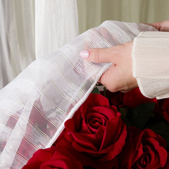 Firanka fantazyjna z ołowianką, wysokość 300cm, kolor 002 biały ze złotą nitką 001777/OLO/002/000300/1