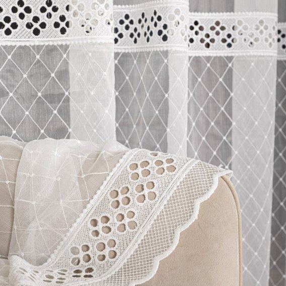 Firanka haftowana po całości, wysokość 285cm, kolor 012 kremowy FH0019/768/012/000285/1