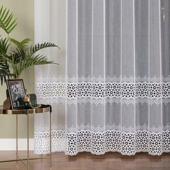 Firanka z aplikacją na markizecie, wysokość 280cm, kolor 001 biały 081574/433/001/000280/1