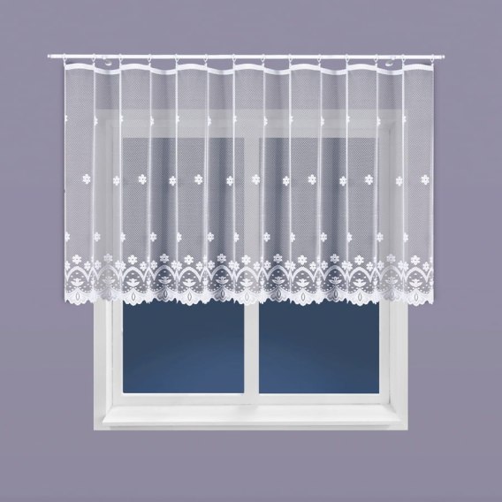 Krótka firanka żakardowa 004421 doskonale sprawdzi się w kuchni, łazience, sypialni czy pokoju dziennym z niższymi oknami. Jej uniwersalny biały kolor pasuje do wielu aranżacji – od klasycznych po nowoczesne. Lekka i półtransparentna struktura tkaniny umożliwia dopływ naturalnego światła, jednocześnie zapewniając dyskrecję i prywatność.