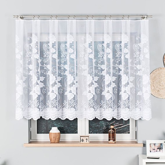 Firanka 023006 doskonale współgra z zasłonami, roletami lub może stanowić samodzielną dekorację okna. Biały kolor sprawia, że pasuje do każdego stylu – od klasycznego, przez skandynawski, po nowoczesny. To ponadczasowy wybór, który nigdy nie wychodzi z mody.