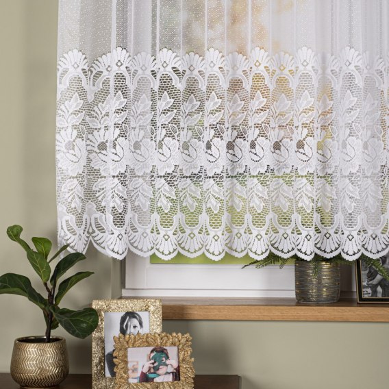 Firanka żakardowa ze wzorem pasowym, wysokość 150cm, kolor 001 biały 361270/000/001/000150/1