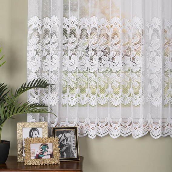 Firanka żakardowa ze wzorem pasowym, wysokość 170cm, kolor 001 biały 361270/000/001/000170/1