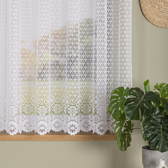 Firanka żakardowa ze wzorem po całości, wysokość 140cm, kolor 001 biały 004411/000/001/000140/1