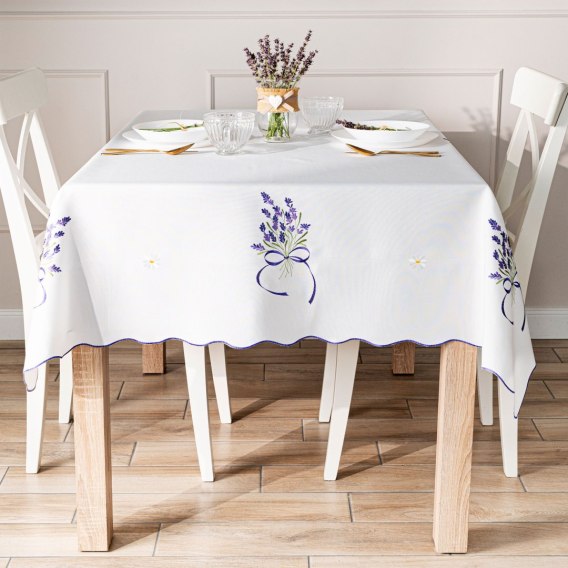 LAWENDOWA POLANA Obrus z haftem, szerokość 140cm x wysokość 180cm, kolor 001 biały 291771/KSP/001/140180/1