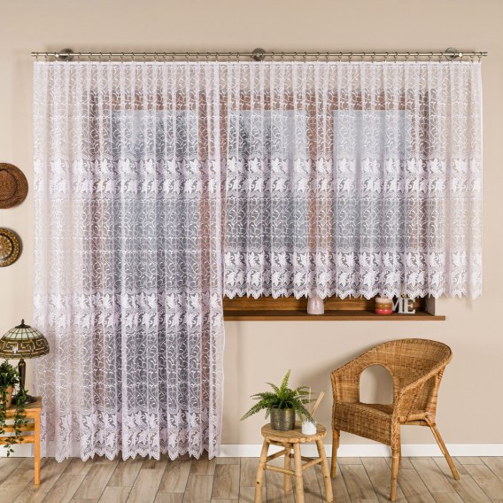 TEOFILA Firanka żakardowa odpasowana na prosto, szerokość 280 x wysokość 250cm, kolor 001 biały 049348/FOP/001/000251/1