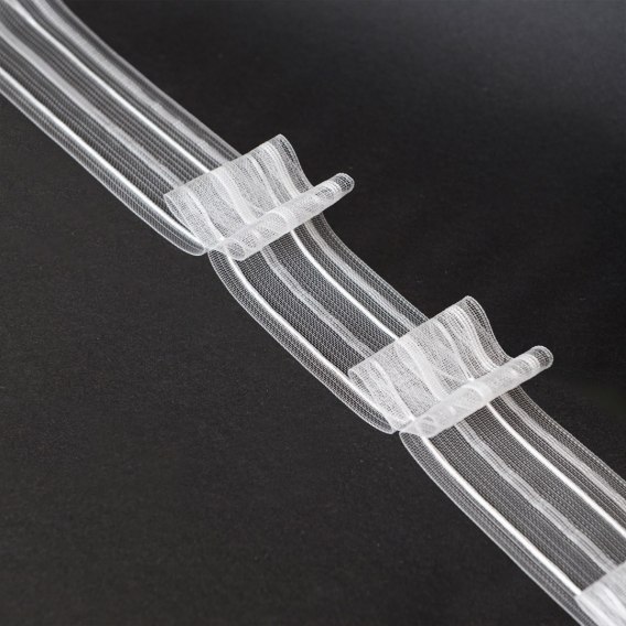 Taśma podwójna zakładka 5cm, marszczenie 1:2, transparentna z białym sznurkiem FM050-22-1C3 TASMAA/U2Z/200/005000/1