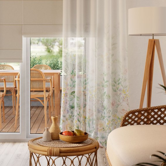 WIOSENNY OGRÓD Firanka z ołowianką WOAL wzór od dołu, wysokość 295cm, kolor 001 D00184/WOA/D01/000295/1