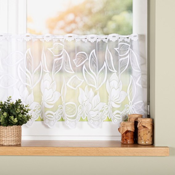 Zazdrostka żakardowa ze wzorem po całości, wysokość 50cm, kolor 001 biały 023338/000/001/000050/1