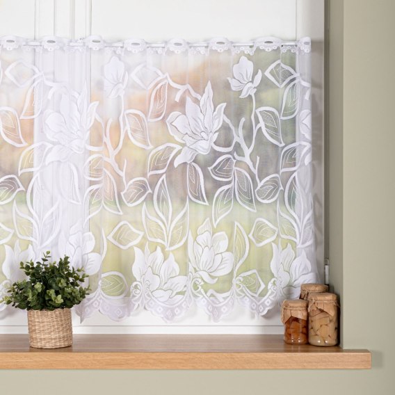 Zazdrostka żakardowa ze wzorem po całości, wysokość 80cm, kolor 001 biały 023338/000/001/000080/1